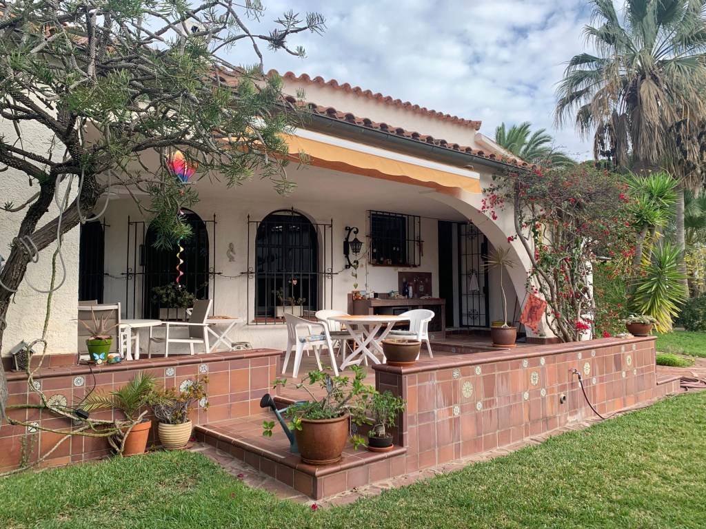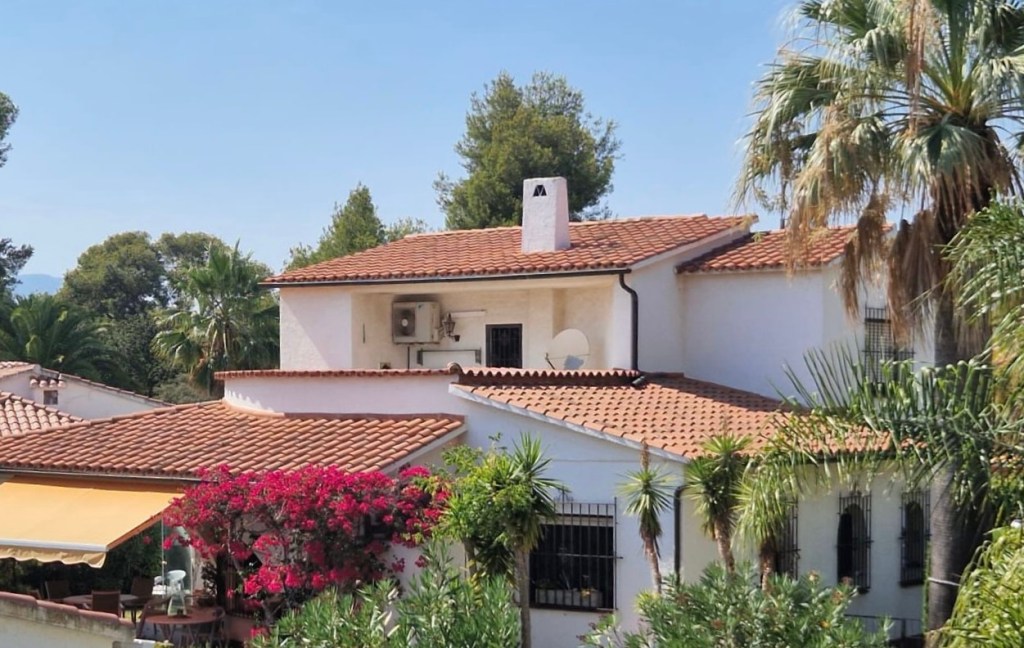 Die Villa, von aussen gesehen Bild 1 die grosse Terrasse ist der mistbewohnte Teil des Hauses Bild 2 der Hauseingang mit dem Parkplatz Bild 3 Gesamtansicht Zurück